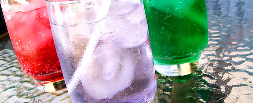 Água gaseificada com xarope natural Sabores: Violeta | Baunilha | Menta | Framboesa